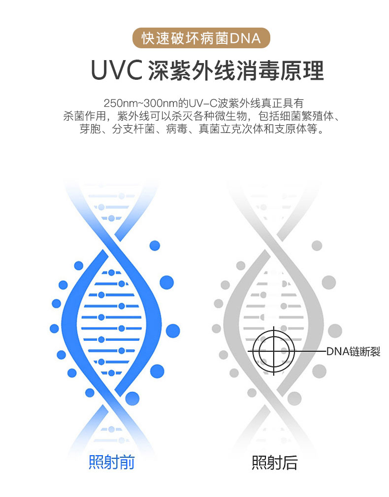 UV-C紫外線殺菌燈已不是什么新事物了,甚至在COVID-19、SARS爆發(fā)之前,紫外線燈就已經(jīng)用于對(duì)生產(chǎn)線上的產(chǎn)品進(jìn)行消毒,對(duì)廢水處理廠中的水進(jìn)行處理以及被動(dòng)清潔HVAC系統(tǒng)難以觸及的部分(線圈,鍋和通風(fēng)口)及其他應(yīng)用場(chǎng)景中進(jìn)行了嘗試和測(cè)試。紫外線衛(wèi)生燈再次聚焦在人們的眼中是因?yàn)镃OVID-19大流行期間被廣泛使用。暴露的空氣和水中都存在大量細(xì)菌,使用紫外線殺菌燈長(zhǎng)時(shí)間的照射,能將空氣中或水中的各種微生物去除掉,其原理是深紫外線能夠破壞細(xì)胞膜和細(xì)胞核結(jié)構(gòu)尤其是破壞遺傳物質(zhì)DNA/RNA的堿基對(duì),使其失去復(fù)制能力或失去活性而死亡。