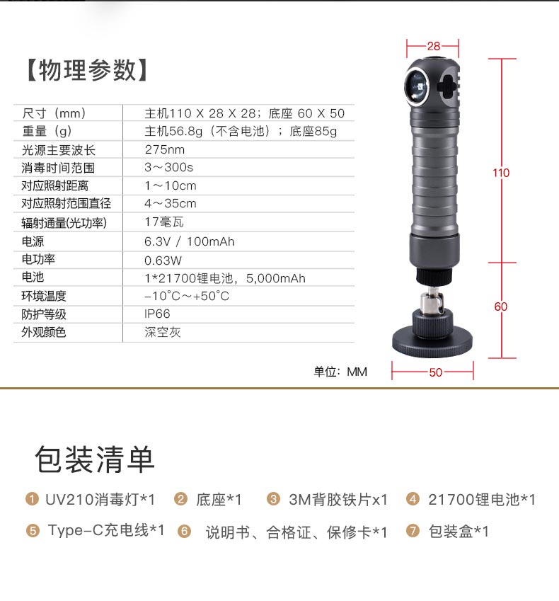 UV210紫外線殺菌消毒燈的UVC深紫外線光源:主要光波波長(zhǎng)275納米,紅外感應(yīng)模塊:自動(dòng)檢測(cè)消毒,紫外線消毒燈適用于酒店,醫(yī)院,學(xué)校等公共場(chǎng)所進(jìn)行殺菌消毒