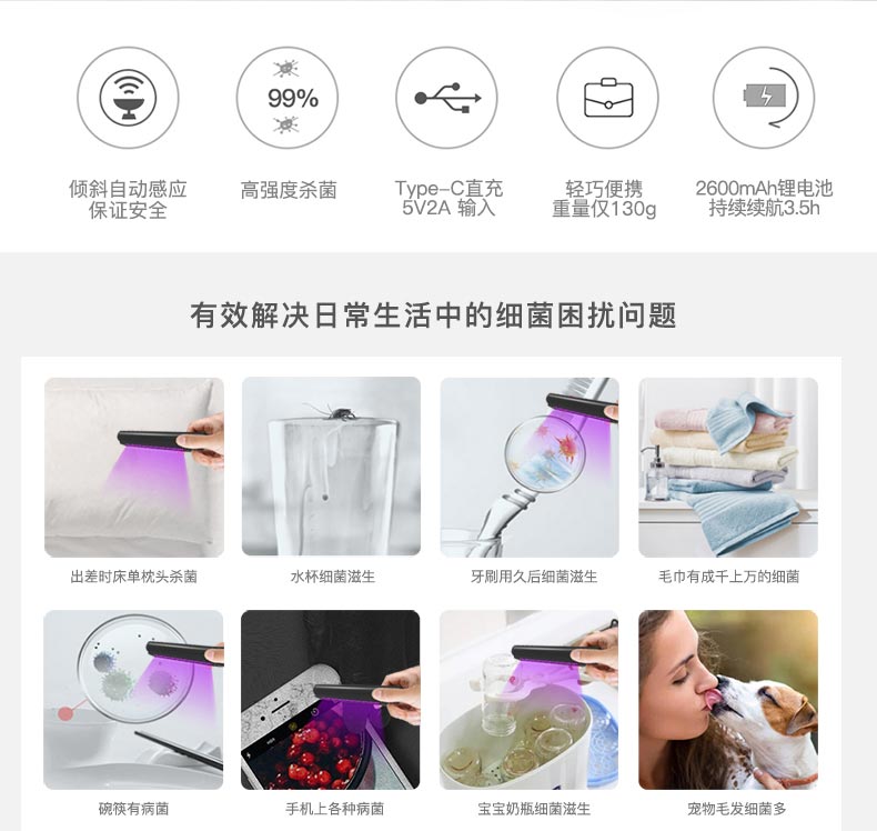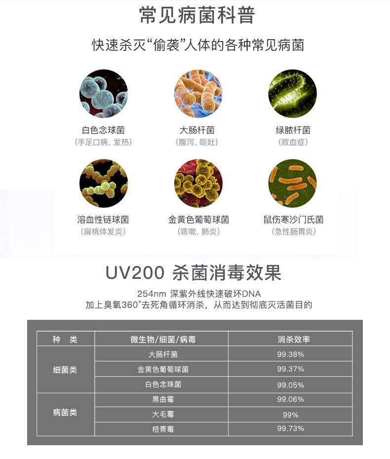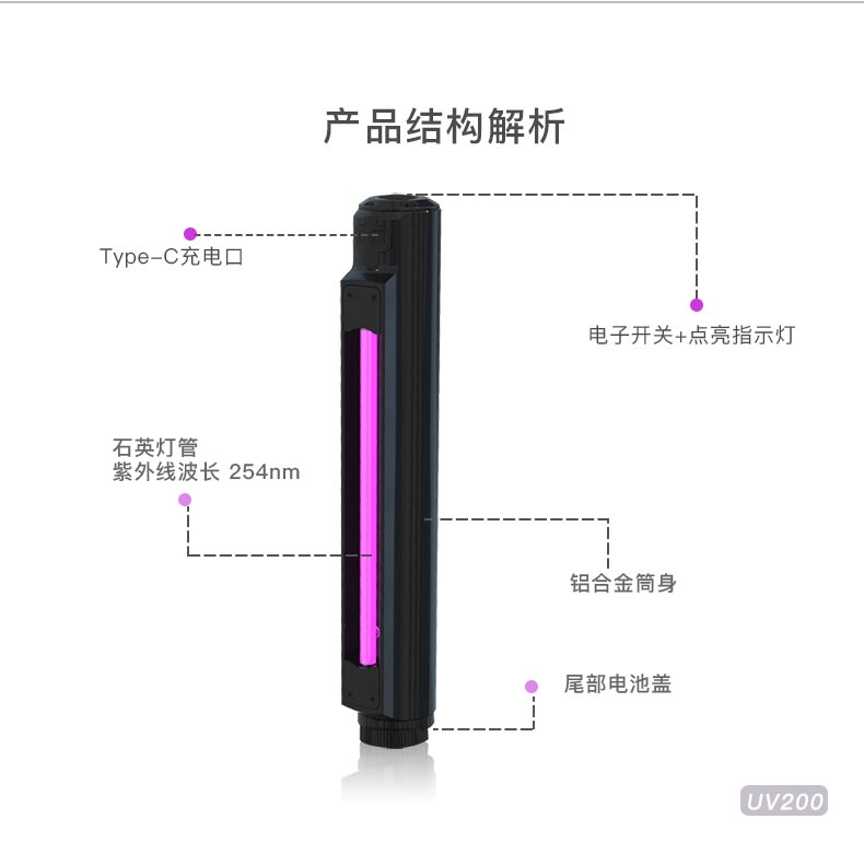 1.UV200是一款便攜式紫外消毒燈,針對(duì)各類(lèi)病毒細(xì)菌、殺滅率達(dá)99%