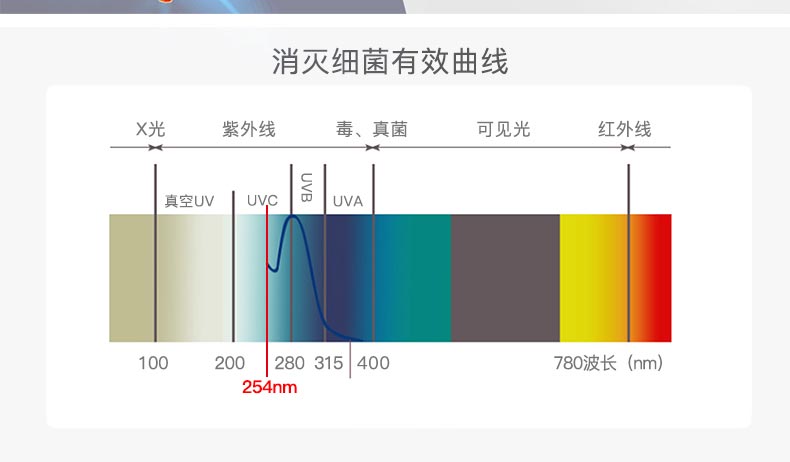 2. UVC石英燈管,254nm波長(zhǎng)有效殺菌,360°無(wú)死角循環(huán)消殺。