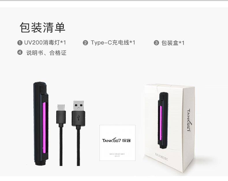 TANK007探客UV200紫外線消毒燈便攜式紫外消毒燈:是一款便攜式紫外消毒燈,針對(duì)各類(lèi)病毒細(xì)菌、殺滅率達(dá)99%,UVC石英燈管,254nm波長(zhǎng)有效殺菌,360°無(wú)死角循環(huán)消殺??捎糜谑謾C(jī)、鑰匙、眼...